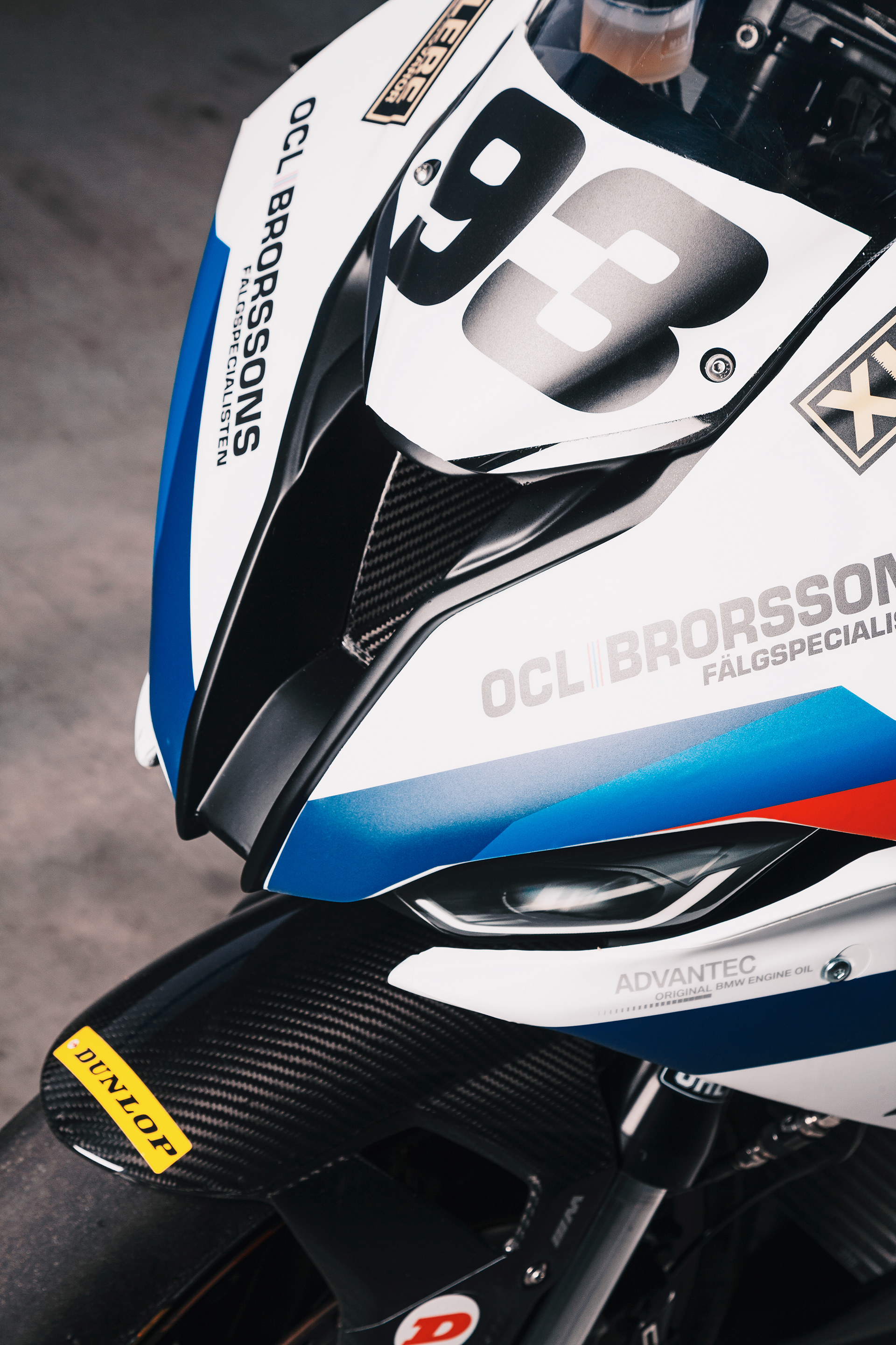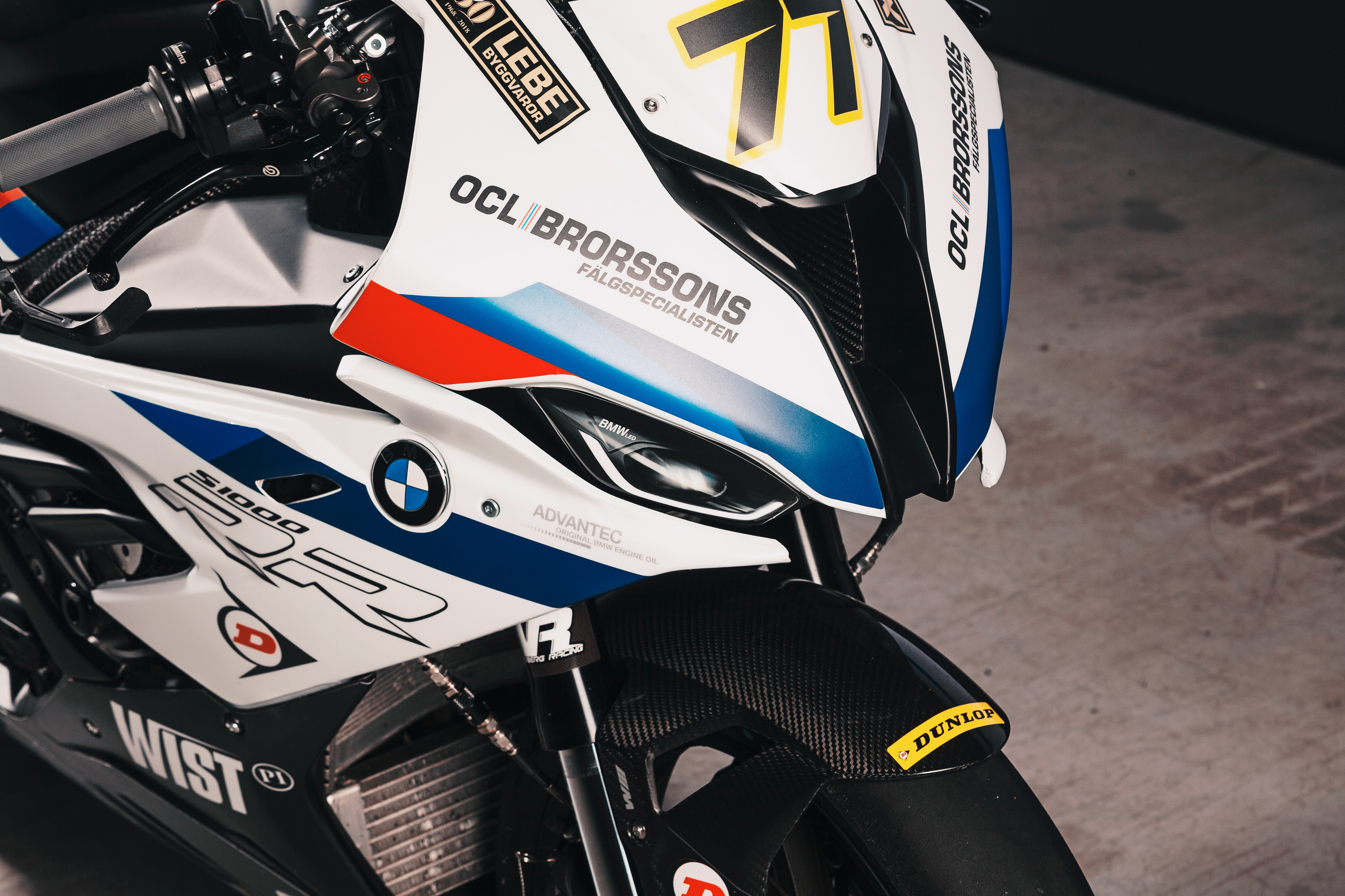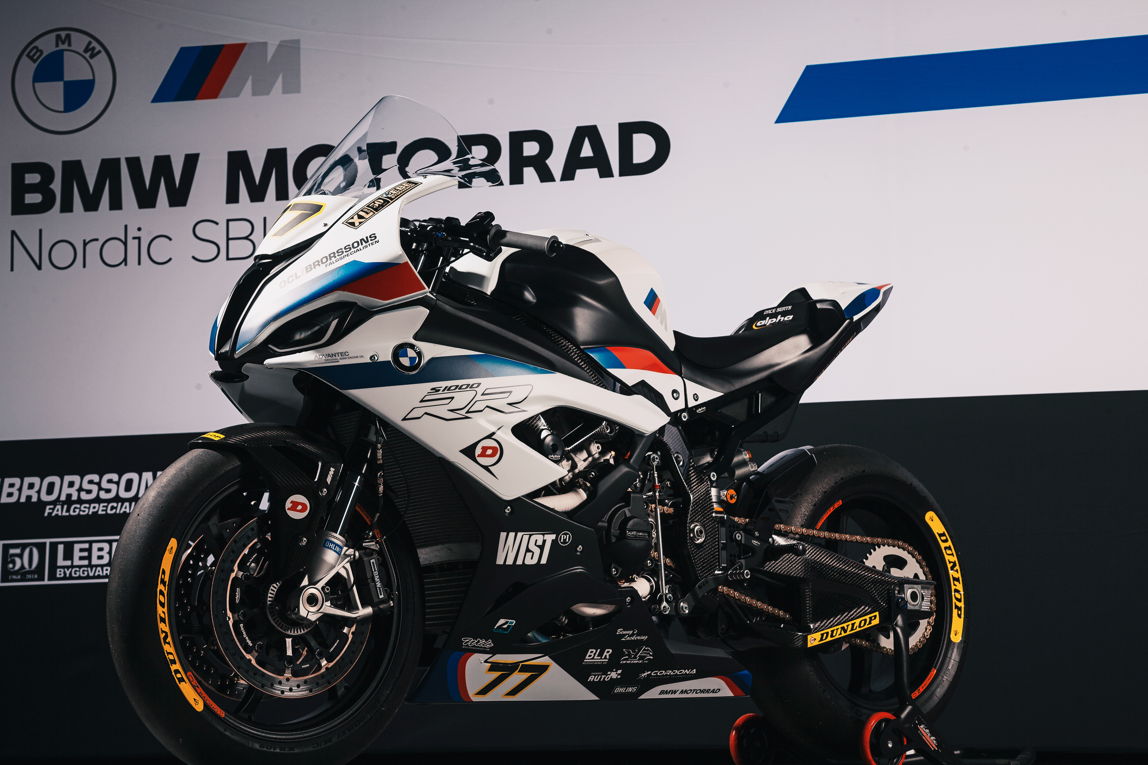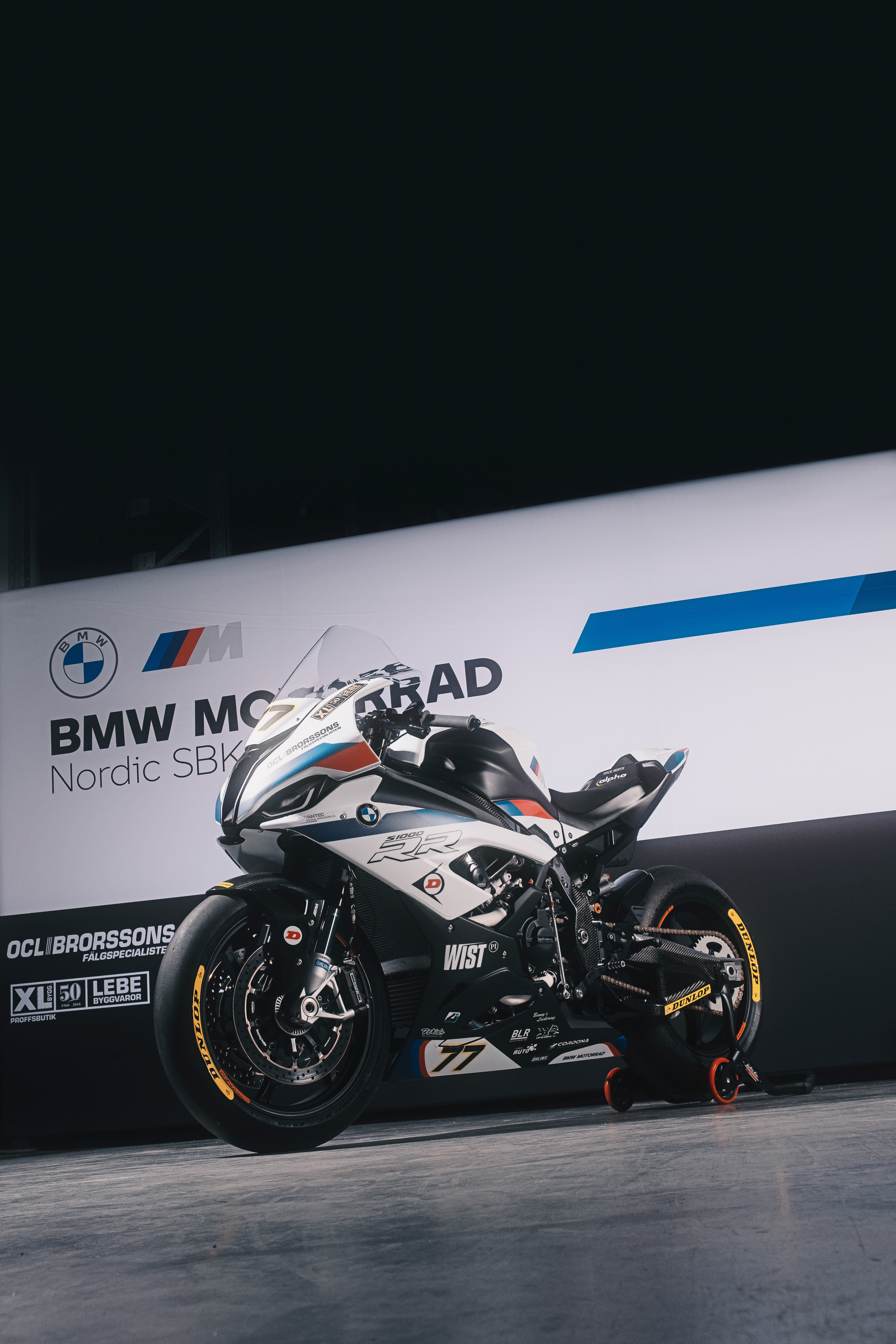 A photoshoot for the BMW Motorrad Nordic Super Bike team to launch their 2021 season livery design. On the pictures the teams two bikes belonging to the riders Fredrik Eriksson 93 and Jimmy Gällros 77.